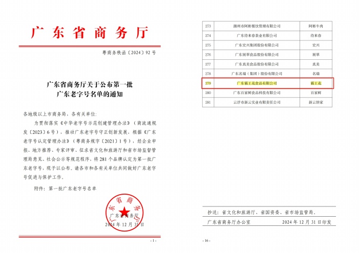 ?2018年12月,經省初步監測、專家審核、全國農業產業化聯席會議審定,霸王花食品公司在農業農村部、國家發改委、財政部等8部門聯合開展的評審中脫穎而出,被授予農業產業化國家重點龍頭企業!