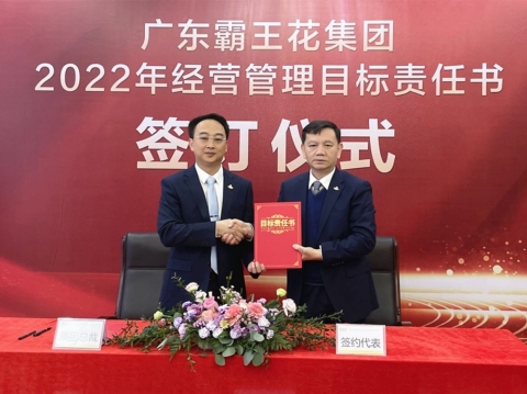 2022年1月21日,廣東霸王花集團2022年度工作會議暨2022年度經營管理目標責任書簽約儀式在集團本部多功能會議室舉行。集團董事長朱日楊、總裁朱榮業、黨委書記羅友望、副總裁陳駿良、副總裁兼財務總監朱利昀出席了會議及簽約儀式。參加會議的還有集團投資發展部總經理黃冠、霸王花食品公司總經理熊傳軍、旺源房地產公司常務副總經理陳永輝、新河實驗學校總校常務副校長謝輝華、旺源典當公司總經理朱禮彬、新河實驗學校附屬第一幼兒園園長葉海燕、德康醫院院長解小會、德康醫院副院長(集團派駐德康醫院管理代表)葉海濤,以及集團本部各職能部門負責人、各下屬子公司部門負責人及以上人員。年度工作會議及簽約儀式由集團副總裁陳駿良主持。